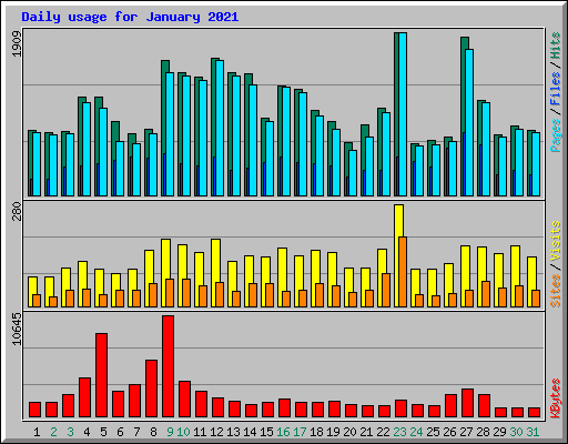 | Day | Hits | Files | Pages | Visits | Sites | KBytes | ||||||